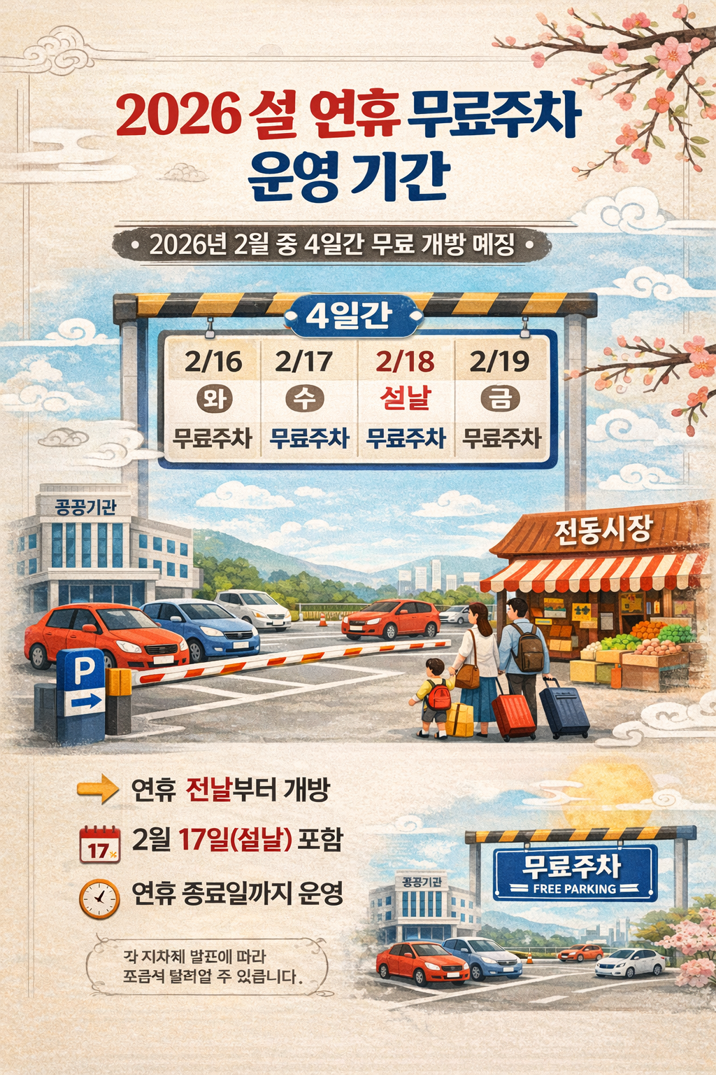 2. 2026년 설 연휴 무료주차 기간 및 기본 정보