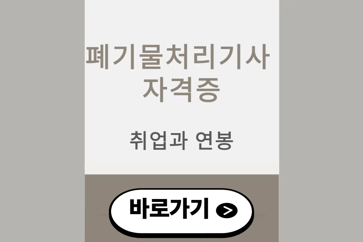 폐기물처리기사 자격증은 환경 분야 대표 국가기술자격증으로, 공공기관과 대기업은 물론 전문 환경업체 취업까지 다양한 기회를 제공합니다. 합격 후 실제 취업 사례를 통해 초봉 수준부터 경력직 연봉, 프리랜서 강사 활동까지 현실적인 수입 구조를 구체적으로 확인할 수 있습니다. 폐기물처리기사 자격증에 대해 놓치면 안되는 핵심가이드는 아래 버튼을 통해 확인하세요! → 핵심가이드 바로가기 ← "> → 핵심가이드 바로가기 ← 또한 ESG 경영 강화와 탄소중립 정책 확산으로 인해 향후 수요가 더욱 증가할 전망이어서 안정적인 커리어 패스를 원하는 분들에게 필수적인 자격증입니다. 지금 바로 전문교육기간에 무료상담 받아보시기 바랍니다. 목차폐기물처리기사 자격증 개요응시 자격 요건시험 구조와 합격 기준취업 ..