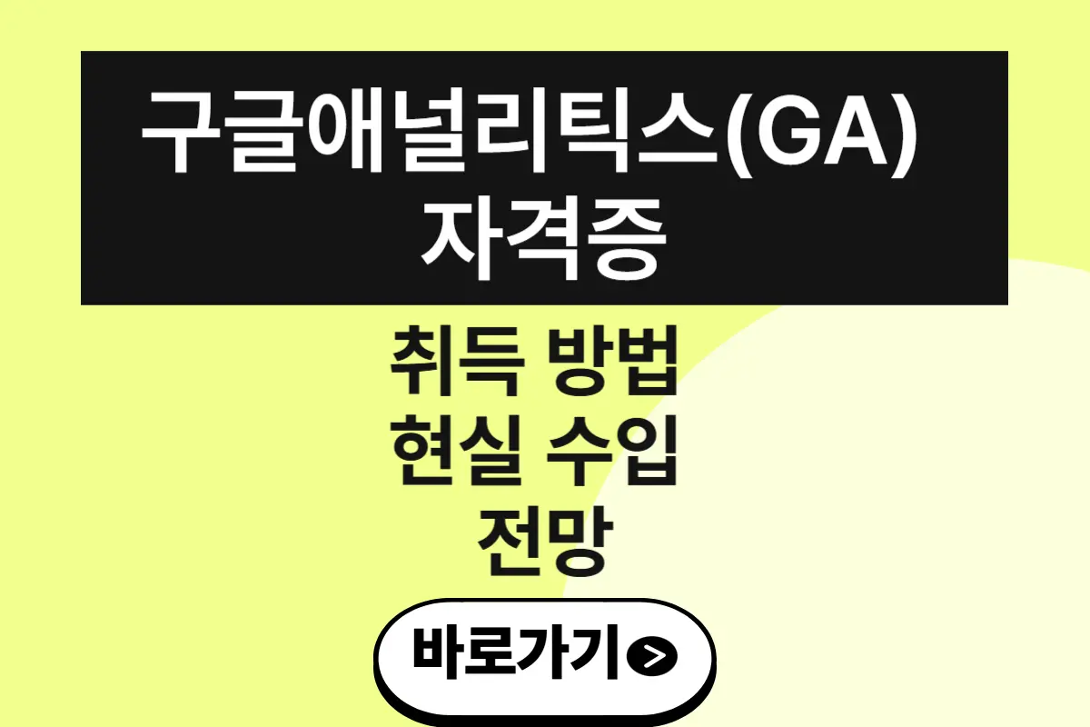 구글 애널리틱스 자격증은 디지털 마케팅, 데이터 분석, 웹사이트 운영 직무에서 경쟁력을 높여주는 핵심 자격증입니다. 기업들이 데이터 기반 의사결정을 중시하는 시대에 GA 자격증 보유자는 채용과 프리랜서 시장에서 주목받고 있습니다. 이 글에서는 구글 애널리틱스 자격증 취득 절차, 학습 방법, 시험 난이도, 그리고 현실적인 수입과 전망을 구체적으로 다루어 보겠습니다. 구글 애널리틱스 자격증에 대한 더 자세한 정보를 원하신다면 아래 썸네일과 버튼을 클릭하세요! → 바로가기 ← "> → 바로가기 ← 목차구글 애널리틱스 자격증 개요구글 애널리틱스 자격증 취득 방법구글 애널리틱스 자격증의 현실 수입구글 애널리틱스 자격증 장단점구글 애널리틱스 자격증 전망과 커리어 활용구글 애널리틱스 자격증과 관련 ..